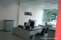 Nun rücken Neu- und Gebrauchtwagenverkauf, Mercedes-Benz und smart, Serviceannahme und Werkstätten zusammen. Alle Ansprechpartner sind jetzt von einer zentralen Infotheke aus mit wenigen Schritten erreichbar, so dass wir unseren Kundinnen und Kunden alle Dienstleistungen rund um ihre Mobilität auf kompaktem Raum anbieten können, erklärt Centerleiter Michael Speh. Die komplett neu gebauten Werkstätten öffnen sich ebenfalls zum Innenhof. Darunter schafft eine helle Tiefgarage den Parkraum für das LUEG Center, in der Kunden ihren Leihwagen abstellen und ihren Wagen trocken entgegennehmen können.