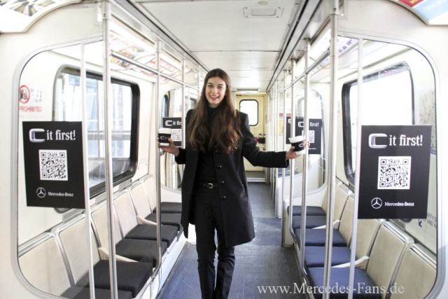 Auf großen Plakaten mit stolzen Sätzen wie Das Beste ist ohne Alternative oder in Bus und Bahn begegnen den Passanten Botschaften, die neugierig machen. "C it first! (lies: See it first). Per QR Code kann man dem Geheimnis, was es denn da zu sehen gibt, auf die Spur kommen und als einer der ersten Augenzeuge der neuen C-Klasse werden. Da kann man dich nur sagen: Nice to C you!