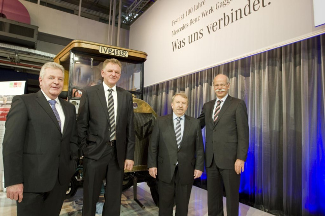Das Mercedes-Benz Werk Gaggenau feiert heute ganz groß: Seit 100 Jahren besteht das Werk der Daimler AG an der Murg in Gaggenau. Carl Benz erwarb bereits 1907 die Mehrheit an der Süddeutschen Automobilfabrik Gaggenau und firmierte das Werk 1911 in Benz Werke Gaggenau G.m.b.H. um. Bei einem Festakt anlässlich dieses Jubiläums begrüßte Werkleiter Dr. Holger Steindorf über 300 geladene Gäste. In ihren Ansprachen würdigten Helmut Rau, Staatsminister des Landes Baden-Württemberg, und Dr. Dieter Zetsche, Vorstandsvorsitzender der Daimler AG und Leiter Mercedes-Benz Cars, das Werk, seine Entwicklung sowie die damit verbundene Bedeutung für die Wirtschaftsregion Gaggenau.