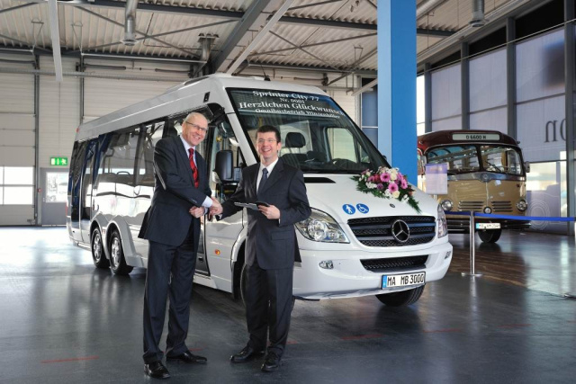 Am 5. Dezember 2011 ist der erste Mercedes-Benz Sprinter City 77 an den Kunden ausgeliefert worden. Roland Sabais, Leiter Verkauf Mercedes-Benz Omnibusse Region West, Oliver Schlamp, Verkauf Mercedes-Benz Omnibusse Region West und Mark Freymüller, Geschäftsführer Vertrieb und Marketing Mercedes-Benz Minibusse, übergaben den symbolischen Schlüssel an Christian Winzenhöler, Geschäftsführer des Omnibusbetriebs Winzenhöler. Entscheidungskriterien für den Kauf des Sprinter City 77 waren seine hohe Beförderungskapazität bei sehr kompakten Abmessungen, seine Wendigkeit und wirtschaftliche Aspekte.