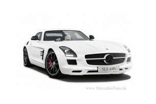 Ebenfalls nur fünf mal gebaut wird der mattweiße Mercedes SLS AMG Roadster. Diese Ausführung kommt mit einem designo Magno Cashmere White Outfit und schwarzen Kontrasten nebst einem entsprechend korrespondierenen Interieur daher. Der mattweiße Flügltürer ist entsprechend wie der Roadster konfiguriert, wird aber in einer Kleinserie von zehn Exemplaren aufgelegt werden.