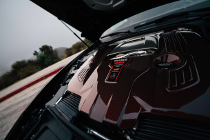 Das BRABUS Masterpiece Interieur besteht aus feinstem roten Leder mit präziser „Shell“-Steppung, kombiniert mit Carbon-Details und Shadow-Gray-Akzenten. Eine Edelstahl-Hochleistungsauspuffanlage mit Klappensteuerung bietet wahlweise dezenten oder kraftvollen V8-Sound.