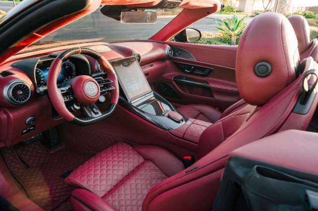 Dank Allradantrieb sprintet der Roadster in 2,6 Sekunden von 0 auf 100 km/h und erreicht nach 23,6 Sekunden die 300-km/h-Marke. Die Höchstgeschwindigkeit ist auf 317 km/h limitiert. Die aerodynamisch optimierte Vollcarbon-Karosserie, BRABUS Monoblock P „Platinum Edition“-Räder (21″ vorne, 22″ hinten) und aufwendige Luftführungen sorgen für Stabilität und Kühlung bei Hochgeschwindigkeit.