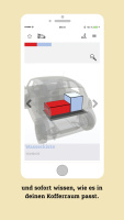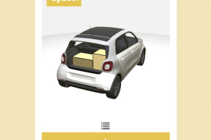 Der Nutzer scannt dafür – etwa in einem Möbelhaus – den Barcode auf den Artikeln, und die App zeigt an, wie die Pakete in seinen smart passen. Alternativ kann er auch aus einer ständig wachsenden Datenbank wählen, in der typische Gegenstände hinterlegt sind. Damit erfährt man auch, ob beispielsweise die Wasserkiste oder der Umzugskarton noch in den fortwo oder forfour reinpassen.
