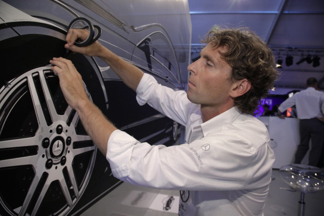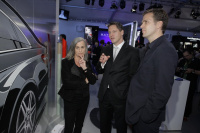 Fußball-Manager Bierhoff ließ sich zusammen mit Modemacherin Gabriele Strehle von Mercedes-Benz Chef-Designer Gordon Wagener demonstrieren wie Autodesign funktioniert.