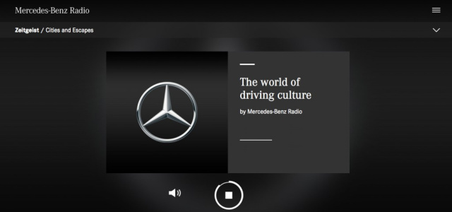 Mercedes-Benz Radio bietet ein 24-stündiges englischsprachiges Premiumprogramm aus der Welt der Marke mit dem Stern. Es umfasst eine abwechslungsreiche Mischung aus hochkarätigen redaktionellen Markeninhalten, anspruchsvoller Musik und inhaltlichen Kooperationen mit ausgesuchten Partnern. Im Vordergrund der Beiträge stehen Geschichten aus der Produkt- und Markenwelt von Mercedes-Benz. So werden neue Fahrzeuge und Studien über alle Baureihen hinweg vorgestellt. Mercedes-Benz Reporter sind bei außergewöhnlichen Events dabei und tauchen in die Welt des Sterns ein. Abgerundet wird das Programm durch Branded Entertainment-Elemente rund um Mercedes-begeisterte Menschen aus aller Welt sowie Inhalte von Partnern, zum Beispiel zu den Themen Reisen, Kultur, Sport, Mode, Lifestyle und Zeitgeist. Die inhaltliche Ausrichtung bietet genug Raum, um auch progressivere Zeitgeist-Themen anzubieten. Wir senden alles rund um die Marke und ihre Produkte allerdings in einer redaktionellen Form und nicht werblich. Damit unterscheiden wir uns von ähnlichen Angeboten, so Fromm.