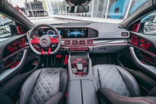 Sportlich-elegant gestylte Aerodynamik-Komponenten aus Sicht-Carbon und maßgeschneiderte BRABUS Räder bis zu den hier abgebildeten 24 Zoll Monoblock Z „PLATINUM EDITION“ Schmiederädern mit Carbon-Aero-Discs verleihen dem 4x4-Fastback eine ebenso athletische wie exklusive Optik. Für die Personalisierung des Innenraums stehen diverse Lederausstattungen in vielen Farben zur Verfügung.