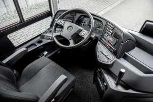 Die Motorleistung des Intouro K beläuft sich wahlweise auf 220 kW (299 PS) oder 260 kW (354 PS). Unternehmen können sogar aus vier Getriebevarianten wählen: manuelles Sechsgang-Schaltgetriebe, vollautomatisiertes Getriebe Mercedes-Benz PowerShift oder Wandler-Automatikgetriebe von Voith und ZF.