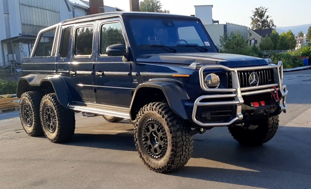Der G63 der Baureihe G463A ist auch als 6x6 zu haben - aber nicht als offizielles Portfolio-Mitglied von AMG, sondern als Umbau der österreichischen Firma OSC (Orange Solutions & Components). G-Force 66 heißt dieser monströse Umbau. Der G63 6x6 herrscht über Wüste und Wasser, geht über Stock und Stein. Keine Frage: Dieses G-Klasse-Monster war und ist für die Wildbahn gemacht – aber kann sich freilich auch im Großstadt-Dschungel eines viel beachteten Auftritts gewiss sein. Mit seinem 585 PS starken und 850 Nm maximales Drehmoment mitbringenden 4-Liter-V8, sechs angetriebenen Rädern, Reifendruckregelanlage für die 37“-Pneus, einer Geländereduktion im Verteilergetriebe, Portalachsen sowie fünf während der Fahrt sperrbaren Differenzialen bringt der 5.960 mm lange und 250 mm höher gelegte G-Force 66 wie der legendäre G63 AMG 6x6 alle Voraussetzungen mit, um so ziemlich jede topografische Herausforderung zu meistern.