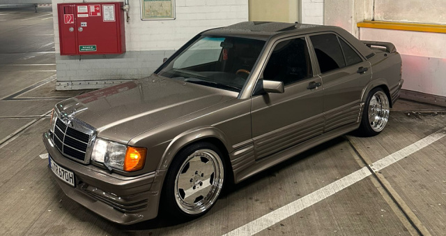 Während Zender- oder Lorinser-Umbauten durchaus bekannt sind und häufiger vorkommen, sind Vestatec-Kits für den 190er durchaus seltenen. Hierbei handelt es sich um einen originalen W201 Vestatec-Umbau. Optisch wurde der Baby-Benz vom Besitzer noch weiter verfeinert. So sorgen Performa-Felgen für ein selbstbewusstes Auftreten und das verbaute H&R-Fahrwerk inklusive gekürzte Stoßdämpfer von TA-Technix für den richtigen Stand und die nötige Tiefe. Der W201 sieht zwar sportlich aus, unter der Haube gurgelt allerdings „nur“ der kleine Diesel-Motor mit 72 Pferdestärken. Dieser Vestatec-Umbau wurde bereits beim Mercedes-Festival SCHÖNE STERNE mit einem Top50-Pokal ausgezeichnet.