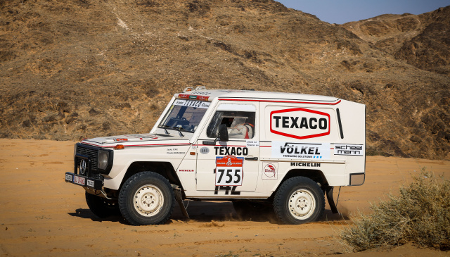 Mit über 100 Jahren Erfahrung in der Gewindebohrer-Fertigung und der Leidenschaft für das Gewinde-Schneiden hat sich VÖLKEL als einer der weltweit führenden Hersteller etabliert. Das hauseigene VÖLKEL Dakar Team mit Mercedes-Fans-Autor Jörg Sand brachte bei der letzten Dakar Classic einen Mercedes-Benz 280 GE in der Klassik-Wertung als 11. von 83 Fahrzeugen ins Ziel. Aber es kommt noch besser: Innerhalb der Classic-Wertung fuhr der robuste Mercedes in der Klasse A (Fahrzeuge vor 1985) sogar auf Platz 1. Es handelt sich um ein originalgetreues Replik des 1983er Paris-Dakar Sieger Fahrzeug von Jacky Ickx. Weil das Fahrzeug schon wieder auf dem Weg zur Dakar Rallye ist, wird stellvertretend für die 1983er Dakar Sieger G-Klasse von Jacky Ickx ein Kunstobjekt aus der Werkstatt des Düsseldorfer Künstlers Jacques Tilly gezeigt.