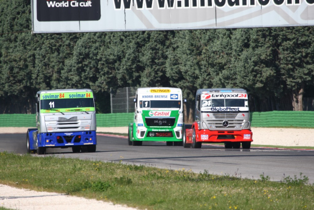 Das Thema Motorleistung ist im Truck Racing ein sehr entscheidenes. Momentan gibt es glasklare Favoriten, die man auch in jedem Rennen auf dem Podest findet. Jochen Hahn, der Europameister und Antonio Albacete z.B. Die fahren mit den sogenannten MAN A+ Motoren und die sind wirklich der Knaller. Die MAN`s, eh schon nicht leistungsschwach, haben über Winter nochmal zugelegt und sind nun in der Lage ein extrem breites Drehzahlband zu nutzen. Effekt: es wird fast nur in einem Gang gefahren, da quasi immer power zur Verfügung steht. Die Werks-Renaults sind momentan sicher etwas dahinter einzuordnen und müssen richtig fighten um das Treppchen zu erreichen. An diesem Wochenende hat nur der Buggyra dazwischenfunken können und zwei Siege eingeheimst.