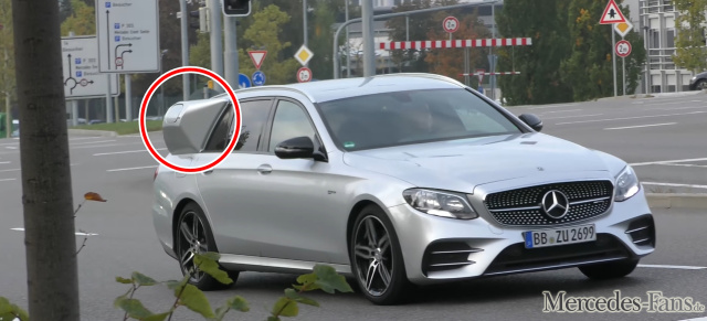 Manche vermuteten hier die neue Plug-In-Burger-Drive-In-Box. Durchaus denkbar, wäre diese an der richtigen Seite der E-Klasse montiert. Andere dagegen waren sich sicher, dass es sich hierbei um die Erprobung des Fluxkompensator handelt. Doch auch das nicht.