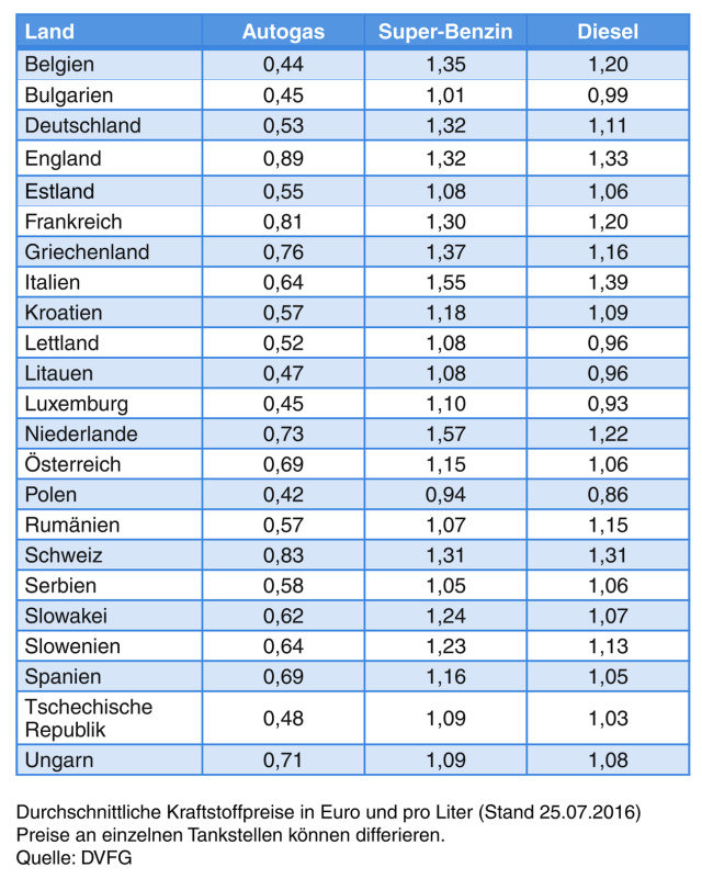Wer seine Urlaubsreise mit einem Autogas-Fahrzeug antritt, kann sich auch in diesem Jahr wieder über günstige Kraftstoffpreise freuen. In vielen beliebten Urlaubsländern tanken Autogas-Fahrer für die Hälfte des Preises herkömmlicher Kraftstoffe, so das Ergebnis einer aktuellen Recherche des Deutschen Verbandes Flüssiggas e. V. (DVFG).