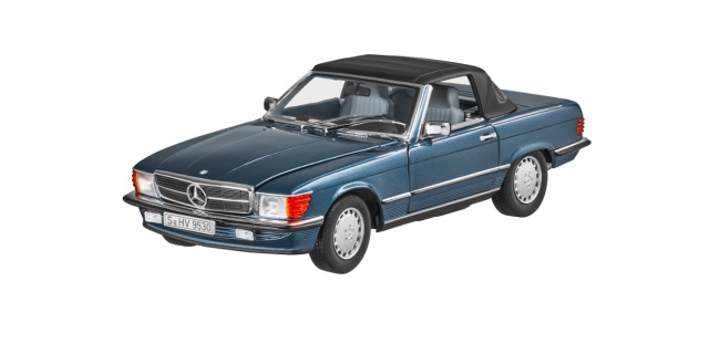 Ein Miniaturmodell, das Sammlerherzen höherschlagen lässt: Das Modell des 300 SL R 107 überzeugt durch Detailtreue. So ist der Roadster im authentischen Farbton lackiert und weist zudem eine originalgetreue Darstellung sämtlicher Interieurdetails auf. Der hochwertig dekorierte Innenraum sowie der beflockte Innen- und Kofferraumboden runden die Optik ab. Türen, Motorhaube und Heckklappe des Modellautos lassen sich öffnen und gewähren einen Blick ins Innere. Das Modellauto wird in einer Mercedes-Benz Classic Verpackung geliefert. Ein beigelegter Schraubendreher ermöglicht das problemlose Lösen des Modells aus der Verpackung. Ein Handschuh bietet zuverlässigen Schutz vor Fingerabdrücken auf der Verglasung und der lackierten Karosserie.