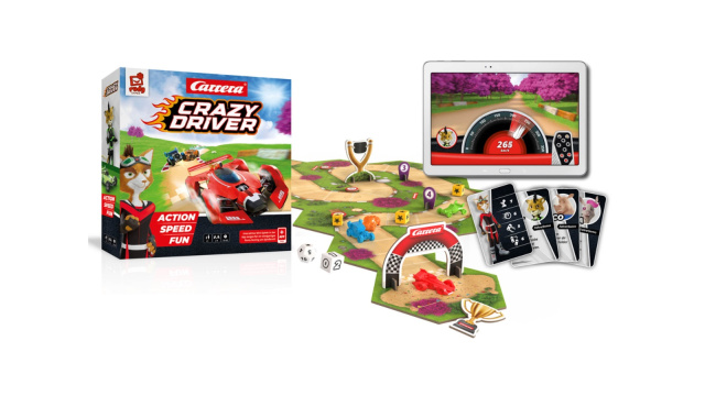 Die App für Android und iOS verbindet die analoge und digitale Spielewelt. Kinder und Erwachsene lassen sich damit für das gemeinsame Spielen am Tisch begeistern. Neben der App als interaktives Spielelement bietet das Spiel mit Würfeln, Karten, Rennautos, Spielerboards und 3-D-Spielelementen das bekannte Spielerlebnis eines Brettspiels. Ein Spielkonzept, das überzeugt: CRAZY DRIVER powered by Carrera wurde von der Fachjury des Bundesverbands des Spielwaren-Einzelhandels e.V. (BVS) zum Top10 Spielzeug nominiert.