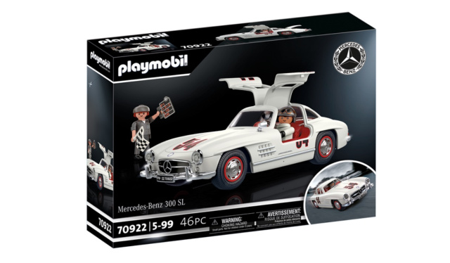 Der Mercedes-Benz 300 SL ist eine wahre Ikone unter Oldtimer-Fans und in der Rennsportszene. Für alle Auto-Liebhaber und Sammler gibt es diesen nun auch erstmals als PLAYMOBIL-Modell (Maße (L 26 x B 10,5 x H 7,5 cm, UVP € 69,99). Die Nachbildung von PLAYMOBIL begeistert Autofans durch viele authentische Details. Neben den Flügeltüren verleiht die Chromoptik des seitlichen Rückspiegels, Stoßstangen, Kühlergrill, Scheinwerferringe und Radkappen dem Modell einen edlen Charakter. Der Wagen bietet Platz für Fahrer und Copilot - einfach Türen aufschwenken, einsteigen und die Oldtimer-Rallye kann beginnen. Mit der Boxentafel (Pitboard) wird der Fahrer während eines Rennens über seine Position, seinen Vorsprung in Sekunden, die Runde und Boxenanweisungen informiert. Für Notfälle während der Fahrt kann unter der Heckklappe ein Werkzeugkasten verstaut werden. Eine beigefügte Präsentationstafel enthält interessante Daten rund um dieses ikonische Fahrzeug.