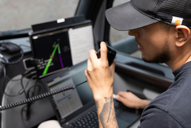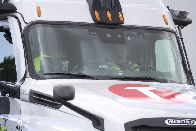 Die Technik hinter dem Spektakel ist quasi hausgemacht: Daimler Truck hat 2019 die Mehrheit an dem US-amerikanische Unternehmen Torc Robotics erworben und entwickelt gemeinsam Transporter, die autonomes Fahren Level 4 beherrschen. Also selbstständig auf Highway von einer Station zur nächsten fahren und dabei auch an Ampeln anhalten, abbiegen und die Spur wechseln. Hub-to-Hub heißt das im englischen Logistik-Fachjargon. Das Tanken ist kein Problem: Die Reichweite des Auto-Cascadias wird rund 1.600 Kilometer betragen. Bei unserer Probefahrt schlägt sich der Truck prächtig und nutzt sogar die Motorbremse, wenn es bergab geht, genau wie es ein erfahrener Fahrer tun würde. „Wenn man laufend die regulären Bremsen einsetzen würde, müssten wir sie jede Woche wechseln“, sagt Andrew Culhane. Bei den Logistik-Unternehmen geht es um Kosten, jedes Verzögern, jedes Beschleunigen kostet Sprit und damit Geld. Der Robo-Truck soll konstant und geschmeidig von A nach B fahren, 24 Stunden am Tag, sieben Tage die Woche. Ohne Fahrer. Das Ziel ist, dass der Auto-Pilot besser agiert als das ein menschlicher Fahrer könnte.