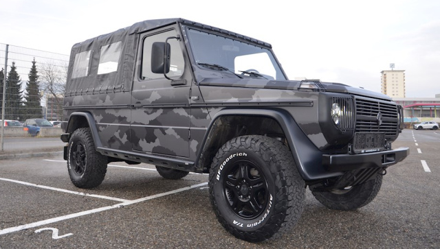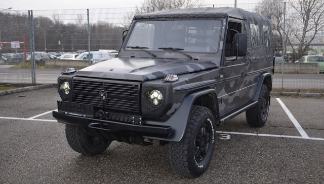 Für die Extraportion S-TEC haben die Grazer einige Arbeiten am Grundfahrzeug erledigt. Für den Kunden hat S-TEC die Karosse vom Fahrzeugrahmen abgehoben und jene Karosse und die Anbauteile sandgestrahlt. Vereinzelte Elemente wurden schwarz matt lackiert. Die größte Auffälligkeit ist wohll die Tarnfolie "Camouflage". Damit kehrt der Puch ein Stück weit zurück zu seinen Wurzeln, denn wie viele andere seiner Art, stammt dieser Puch 230 GE aus der Hand des Schweizer Militärs.