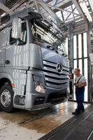 Mit Investitionen für die gesamte Fahrzeugentwicklung von über einer Milliarde Euro ist mit dem neuen Mercedes-Benz Actros der erste Lkw auf die Straße gebracht worden, der konsequent für die erausforderungen der Euro VI-Vorschriften ausgerichtet ist. Zudem wurden über eine Milliarde Euro in Standorte, Anlagen und Werkzeuge investiert. Der neue Fernverkehrs-Lkw geht am 1. Juli 2011 an den Start. Die Messlatte liegt für ihn hoch, denn sein größter Wettbewerber ist der aktuelle Actros MP3. Mit mehr als 700.000 Fahrzeugen ist er der Bestseller in Europa.