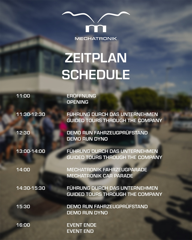 Auch in diesem Jahr erwartet euch ein abwechslungsreiches Programm: Bei MECHATRONIK CARe gibt es ein exklusives Angebot, auf der Demolap erlebt ihr seltene Fahrzeuge live in Aktion und auf dem Rollenprüfstand erwartet euch eine eindrucksvolle Soundkulisse!