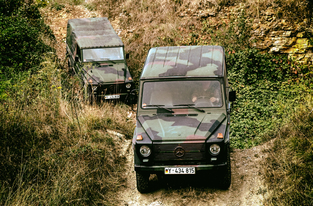 Fahrzeuge: eigene G-Klasse (Wolf oder andere Militärversion der G-Klasse)