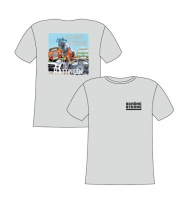 Das dritte neue T-Shirt ist das "Event". Das in einem hellgrau gehaltene Shirt kommt mit einem kleinen SCHÖNE STERNE-LOGO auf der Brust und einer großen Illustration auf dem Rücken, die von dem Künstler Bernd Röttgers gezeichnet worden ist.