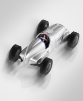 Und wie wird das Geld eingespielt? Ganz einfach. Wer mit einem Weltmeistertitel nach Hause gehen möchte und vielleicht noch einen der schönen Preise gewinnen will, kauft für 2 Euro einen der kleinen Silberpfeile und zahlt pro Start noch einmal 1 Euro Startgeld. Dann wird das Auto aufgezogen und schießt anschließend die vom Verein Rollkultur e.V. gebaute Bahn entlang. Die Autos, die an beiden Veranstaltungstagen am weitesten kommen, kassieren dann am Sonntag die Ehrungen und Preise. Die Mercedes-Benz Collection stellt für diese Weltmeisterschaft rund 750 Silberpfeile zur Verfügung.