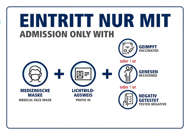 Bitte bringt Euren offiziellen Impfnachweis bzw. Impfpass mit. Als Nachweis muss der originale oder digitale Impfpass vorgelegt werden. Eine Kopie genügt nicht. Internationale Gäste müssen eine personalisierte, datierte und ausgedruckte Impfbestätigung vorlegen können.