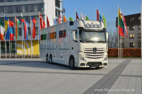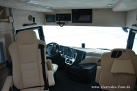 Als Unterbau des 26 Tonnen schweren Centurion dient das Modell Actros von Mercedes-Benz. Mit einer Leistung von 422 PS bietet der mit Turbolader aufgeladene 12,8 Liter große Reihensechszylindermotor ausreichend Reserven in allen Fahrsituationen. Für entspanntes und vor allem sicheres Reisen auch auf langen Strecken sorgen serienmäßig die Mercedes-Benz-Fahrassistenten wie das bewährte elektronische Bremssystem, der Stabilitätsregel-Assistent oder die radargesteuerten Hilfen zum Einhalten von Fahrspur und des Sicherheitsabstandes. Die ergonomisch geformten Klima-Schwingsitze bei Mercedes ebenfalls serienmäßig versprechen hohen Sitzkomfort für Fahrer und Beifahrer.