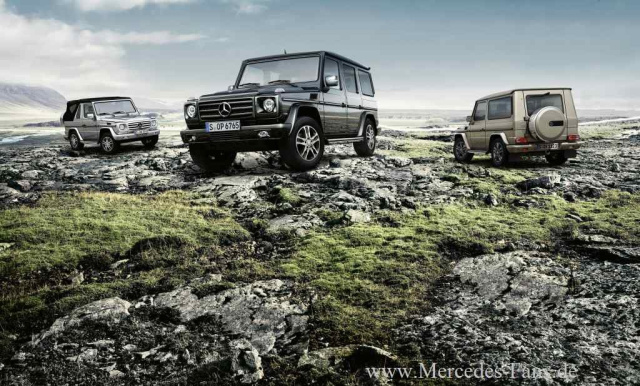 Die Mercedes-Benz G-Klasse gehört bereits seit 1979 ununterbrochen zum Modellprogramm von Mercedes-Benz und gilt nach wie vor als Geländewagen par excellence. Ihre Ausnahmestellung als Offroad-Ikone sicherte Mercedes-Benz durch ständige, konsequente Weiterentwicklung über mehr als drei Jahrzehnte. Die jüngste Generation der G-Klasse überzeugt deshalb mit modernster Antriebstechnik und hochkarätiger Innenraumausstattung. Gleichzeitig bewahrt sie ihre typischen, hochgeschätzten Tugenden wie äußerste Robustheit und ausgezeichnete Offroad-Eigenschaften. Damit gewinnt sie bereits zum neunten Mal die Leserwahl der Fachzeitschrift Off Road und darf sich erneut Geländewagen des Jahres nennen.