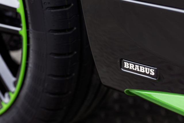 Das tailor made Exterieur Style-Paket betont das sportlich individuelle Erscheinungsbild. Das Paket umfasst unter anderem einen BRABUS Frontspoiler in black/electric green sowie BRABUS Seitenschweller und BRABUS Heckdiffusor in dieser Farbkombination. Der BRABUS Dachkantenspoiler ist schwarz lackiert, die dritte Bremsleuchte besitzt eine Rauchglas-Optik.