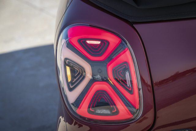 „Cool reduziertes Design mit ausgeprägten, kräftigen Radläufen. Dazu kurze Überhänge und individualisierbare Akzente.“ So beschriebt man bei smart das Refreshment der Exterieur-Optik. Das coolste neue Design-Element dürfte die Rückleuchten-Grafik im Iron-Cross-Design sein. Die integrierten Voll-LED-Scheinwerfer sind übrigens optional erhältlich. und umgestaltete Kühlergrills knüpfen nahtlos an die letzten Showcars an.