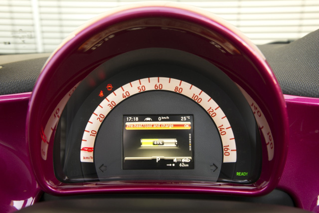 Neben dem Basis-Fahrprogramm kann der Fahrer den ECO Modus wählen. Dieser ist auf eine besonders effiziente Fahrweise ausgelegt. Dazu ist die Höchstgeschwindigkeit begrenzt, die Fahrpedalkennlinie angepasst und die maximale Rekuperationsstufe fest vorgewählt. Im Schiebe- oder Bremsbetrieb wird Bewegungsenergie des Fahrzeugs in elektrische Energie umgewandelt – die so genannte Rekuperation. Vorausschauend arbeitet die radarbasierte Rekuperation, die im Basis-Fahrprogramm aktiv ist. Über einen Radarsensor wird das Verkehrsgeschehen beobachtet und die Rekuperationsstufe passend zur aktuellen Situation gewählt. Um Energie zu sparen und noch mehr Reichweite zu gewinnen, verfügt der smart electric drive zudem über eine Vorklimatisierung. So lässt sich der Innenraum zum Beispiel schon auf die gewünschte Temperatur bringen, während das Fahrzeug noch zum Laden an der Steckdose hängt. Über die “smart control“-App lassen sich viele electric drive Informationen per Smartphone, Tablet oder PC abrufen und Funktionen wie Vorklimatisierung oder intelligentes Laden bequem aus der Ferne steuern. Gegenüber dem Vorgänger wurden die Bedienmöglichkeiten ausgebaut. So erlauben zum Beispiel zwei programmierbare Abfahrtszeiten, dass häufige Fahrten für intelligentes Laden und Vorklimatisierung nicht immer neu eingestellt werden müssen.