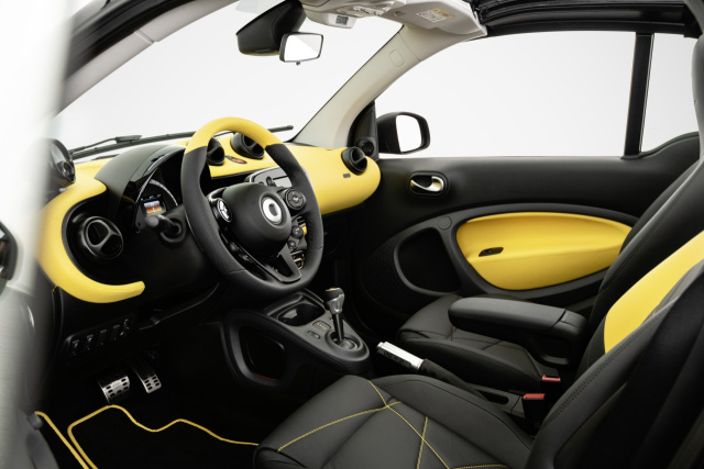 Das Farbspiel ist auch eine Hommage an die erste Generation smart: Von der in Gelb glänzenden Schnauze bis hin zum Schriftzug #21 im Tag-Stil über das matt schwarze Heck. Das verwendete Gelb ist angelehnt an die Originalfarbe „hello yellow“ und schafft den für die Edition so wichtigen Bezug zum Ursprung. ‚Reduce to the max‘ versprach das Konzept der allerersten Fahrzeuge. Die Idee damals: Die Zusammenarbeit mit unterschiedlichen Künstlern. So ließ unter anderem der Schweizer Künstler Roman Signer das Auto durch eine Art Tunnel fahren, an dessen Ende ein Farbeimer über den smart geschüttet wurde. Mit dem Design der Final Collector’s Edition – dem ausgefranzten Wechsel von Gelb zu Schwarz – zitiert Grcics Entwurf auch einen Teil dieser Historie.