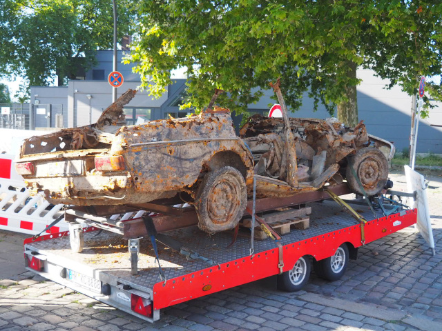 So einmalig wie die im Mai geborgene /8 Wasserleiche aus dem Baldeneysee in Essen, die hier wie ein Kunstwerk zu betrachten war. Ein 230/8 von 1968/69 der als Serie 0.5 in blauer Lackierung einst in Essen zugelassen war.