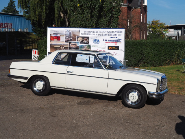 Aber auch das weisse 250CE Coupé, das im Juli 2021 im Ahrtal der Flut zum Opfer gefallen war, wurde hier erstmalig der Öffentlichkeit gezeigt. Ein Projekt, bei dem der /8 Stammtisch Hamburg und viele regionale Partner aus der KFZ- und Oldtimer-Branche im Norden zusammen den Flut-Schaden dieser Katastrophe bereinigt haben, um dem Eigentümer des W114 diese Sorge zu nehmen.