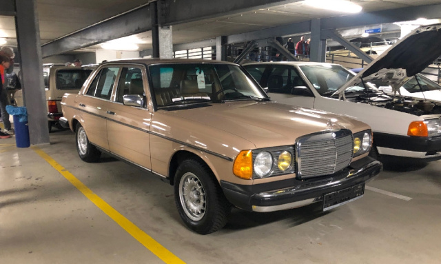 Mercedes-Fans fanden sicherlich die meisten Verkaufsfahrzeuge bei den zahlreichen Oldtimer-Händlern und auch in der Fahrzeugbörse, die wie immer in dem direkt an die Messehallen grenzenden Parkhaus lag, konnte man viele schöne Sterne entdecken. Darunter auch einige Preziosen. Und wie in den Messehallen herrschte im Parkhaus eine ganz besondere Atmosphäre, die man so von anderen Oldtimermessen nicht kennt.