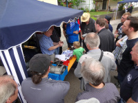 Der Samstag wurde so zum Haupttag des Treffens. Schon früh füllte sich der private Teilemarkt mit Verkäufern und Käufern. Neben vielen Ersatzteilen, Zubehör, Accessoires, Literatur und Modellen konnte in diesem Jahr ein vermehrter Trend zu Kunsthandwerk- und Handwerks-Artikeln bemerkt werden. Von der gehäkelten Klorollenabdeckung, genähten T-Shirts für die Kleinsten bis hin zur nachgefertigten Abdeckungen für das /8er Reserverad mit Packtaschen konnten die Besucher nach Herzenslust einkaufen. Die meisten von mir befragten Verkäufer waren mit dem Tag sehr zufrieden.