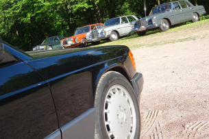 Aber zum Kernthema, den Autos. Noch mehr als im letzten Jahr konnten die Mercedes Freunde Unterfranken Brücken zwischen Generationen und Genres schlagen. Vom original erhaltenen, nach jahrzehntelangem Tiefschlaf behutsam geweckten Heckflossenbenz 220S über bildschöne 190SL und Pagoden, tolle Pontonbenz und Strich-Acht, bis hin zu aktuellen Fahrzeugen, begeisterten herausragende Exponate aus den allermeisten Mercedes-Baureihen der vergangenen 70 Jahre. Das Treffen vereinte nicht nur grundverschiedene Fahrzeuggenerationen, sondern auch gegenläufige Ansätze. Manche Fahrzeuge waren völlig original, teils aufwendig restauriert oder nicht minder aufwendig über viele Jahre und mehr oder weniger Kilometer gepflegt. Manche zeigten sich dezent oder zurückhaltend-zeitgenössisch getunt. Einige allerdings waren inklusive deutlicher Leistungssteigerungen sehr stark modifiziert. Kurzum, bei den Mercedes Freunden Unterfranken traf sich die volle Bandbreite der Mercedes Enthusiasten.