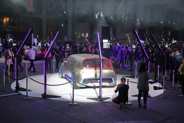 Während die Ausstellung tagsüber für das normale Publikum geöffnet war, fand am Abend unter dem Motto "Night under the Stars" eine exklusive Feier mit 3.500 geladenen Gästen statt, die pünktlich mit dem Sonnenuntergang in Paris um 21.51 Uhr startete. Dabei wurden die Fahrzeuge aufwendig illuminiert und unter der einzigartigen Glaskuppel des Grand Palais perfekt in Szene gesetzt. Eine kleine Show, jede Menge teurer Getränke und Musik machten diesen Abend zu einem grandiosen Erlebnis. Die Wahl dieses Ortes war übrigens nicht nur der Schönheit geschuldet, sondern eine Reminiszenz an den Pariser Autosalon der Vergangenheit, der im Grand Palais von 1900 bis 1960 stattfand. Heute ist Mercedes-Benz der erste Automobil-Hersteller, der in diesem historischen Gebäude, das zur Expo im Jahre 1900 errichtet wurde, eine eigene Ausstellung ausrichtet.