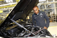 In Begleitung von Werksleiter Dr. Willi Reiss besichtigten Rosberg, Hamilton und Wolff die Produktionsanlagen der neuen Mercedes-Benz S-Klasse, die seit diesem Jahr in Sindelfingen produziert wird. Hier durften die beiden Silberpfeil-Piloten selbst ihr Geschick beweisen und die Räder einer Mercedes-Benz S-Klasse montieren. Das Montieren der Räder einer neuen S-Klasse am Band war eine neue Erfahrung für mich ich bin aber froh, dass am Rennwochenende meine Jungs in der Box die Reifenwechsel für mich übernehmen, sagte Hamilton. Sie sind darin auch sehr viel schneller als i