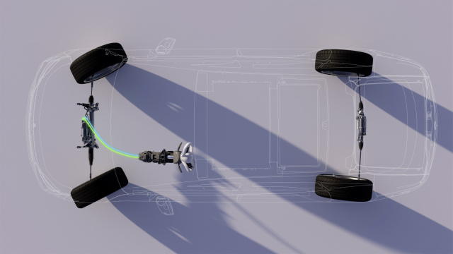Die Funktionsweise von Steer-by-Wire im Detail: Abhängig von Fahrgeschwindigkeit und Fahrsituation gibt ein Aktuator am Lenkrad (Steering Feeback Unit; SFU) das Lenksignal des Fahrenden an das Lenkgetriebe (Steering Rack Unit; SRU) weiter, das die Räder lenkt. Die SFU erzeugt zudem das Mercedes‑Benz typische Lenkgefühl. Durch die mechanische Entkopplung von Lenkrad und Rädern entfällt die direkte Gegenkraft. Stattdessen wird der Reifen-Fahrbahn-Kontakt mithilfe der Rückstellkräfte der gelenkten Räder modellbasiert berechnet und entsprechend erzeugt.