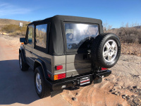 Das Cabrio bekam sogenannte „Gulfstream 500 jet sun visors“, sprich durchsichtige Sonnenblenden. Dazu kommen „Rock Sliders“ gegen Schäden im Gelände, sowie abnehmbare Fenster und ein individualisiertes Verdeck. Das „heavy duty“ Stoßstangen-Set sorgt für einen kräftigeren Auftritt und die elegante „Chilewich“ Bepolsterung sorgt auch im Innenraum für Wohlfühlatmosphäre. Dazu tragen auch die Leder-Elemente z.b am Schaltknauf bei.