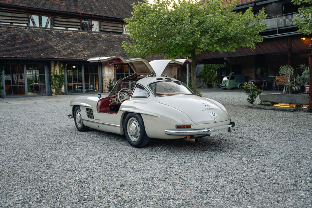 • 1955 Mercedes-Benz 300 SL Coupé in Auslieferungsfarbe Weißgrau DB 158 kombiniert mit rotem Leder 641