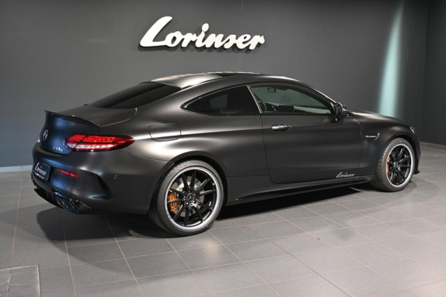 Auch optisch weiß das Mercedes-AMG C 63 S Coupé zu beeindrucken. Die Frontschürze im A-Wing-Design betont mit einer Querfinne in den äußeren Lufteinlässen die Breite des Fahrzeugs. In der Seitenansicht fallen neben den sportlichen Schwellerverkleidungen die AMG Performance Schmiederäder im 5-Doppelspeichen-Design auf. Auch das Heck vermittelt mit zwei Doppelendrohrblenden einen kraftvollen Auftritt, der von einem expressiveren Diffusor verstärkt wird. Das optionale und hier verbaute AMG Aerodynamik-Paket setzt noch sportlichere Akzente: Der expressivere Frontsplitter, die Abrisskante mit integriertem Gurney Flap, die breiteren Seitenschwellereinlagen, die Flics im hinteren Stoßfänger sowie der expressivere Diffusoreinsatz sind in hochglanzschwarz ausgeführt. Lackiert wurde das C63 S Coupé in MANUFAKTUR graphitgrau magno. Für den C63 mit V8 ruft Lorinser einen Preis von 115.800 Euro auf. Hier geht es direkt zum Inserat.