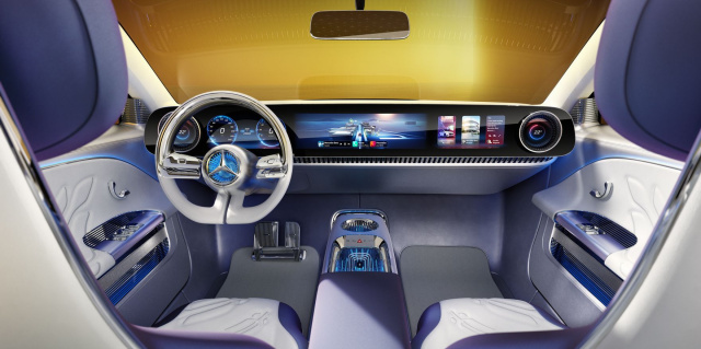 Mercedes läutete die neue Ägide der extrabreiten Bildschirme mit dem Hyperscreen in Elektromobilen wie den EQS ein. Die nächste Evolutionsstufe war in der BEV-Langstreckenstudie EQXX zu sehen, bei der sich die gekrümmten Monitore schon deutlich natürlicher in das Interieur einfügten. Bei den Modellen, die auf der MMA-Plattform (Mercedes-Benz Modular Architecture) basieren, gehen die Pillar-to-Pillar-Displays (von A-Säule zu A-Säule) vermutlich im nächsten Jahr in Serie. Den Auftakt macht die neue vollelektrischen CLA-Familie. Das Curved-Display ist mit einem Radius von 4.200 Millimetern gebogen, misst 47,5 Zoll (120,65 Zentimeter) und besteht aus mehr als 3.000 Leuchtdioden, die auf einer 7.680 mal 660 Pixel großen Fläche ausgeleuchtet werden.