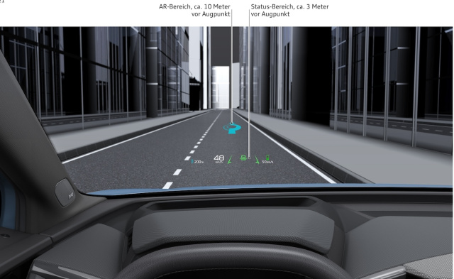 Für viele Autofahrer sind jene Pfeile, Linien und Verkehrszeichen, die aus den verschiedenen Displays auf sie zukommen, noch recht befremdlich. Volkswagen setzte bei seiner aktuell ID-Familie wohl etwas voreilig auf eine betont kleine Instrumenteneinheit und wollte die wichtigsten Informationen über ein Head-Up-Display ins Blickfeld des Fahrers spielen. Audi und Skoda mussten mit ihren MEB-Modellen folgen. Damit nicht genug, denn die Projektionen in die Windschutzscheibe werden auf Wunsch um eine virtuelle Realität erweitert. Heißt, der Fahrer hat durch das Zusammenspiel von Augen, Projektion und Umfeld das Gefühl, sich mitten im Geschehen zu befinden. Statt eines drögen Pfeils auf dem Navigationsbildschirm oder in der Instrumenteneinheit, dass es in 200 Metern rechts in die nächste Straße geht, führt der Pfeil Fahrer und Auto visuell in die Straße. Der Pilot muss gar nicht mehr auf die Displays hinter dem Lenkrad und in der Mitte der Armaturentafel schauen, sondern lässt sich wie von Geisterhand leiten.