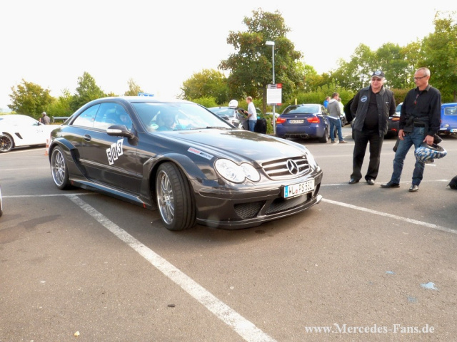 Peter Seidenberg aus Hamburg lud zum Renngefühle Schnuppern in seinen CLK DTM, einer von nur 100 gebauten, ein. Bei Günter Haslberger durften die Gewinner einen 2003er CLK AMG 63 Black Series im Einsatz erleben. Peter betreibt seit 12 Jahren Motorsport, er fährt ausschließlich AMG. Natürlich geht dieser Sport nicht ohne Risiko ab, sagt er. Einmal mehr, einmal weniger davon, einmal mehr, einmal weniger Glück. Dabei spielt er auf einen Vorfall bei der Scuderia Hanseat an, als er mit der rechten Seite vorn und hinten in der Leitplanke landete, das Fahrzeug wie durch ein Wunder aber nur zwei irreparable Felgenschäden davontrug. Dagegen hat es ihn einmal fast voll erwischt, ein Schaden von 84.000 war die Folge. Dass solche Bekenntnisse nicht zur Begrüßungsansprache für die angereisten Copiloten gehörten, versteht sich am Rande.