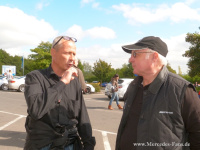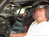 Dass daneben auch andere gemeinsame Unternehmungen wie Besuche bei Treffen im Umkreis von 300 km im Programm stehen, zeigt die Teilnahme bei dem Mercedes-Event SCHÖNE STERNE in Hattingen, wo die Gruppe mit 13 Fahrzeugen vertreten war. Ja, und dann sein Ringerlebnis mit Peter. Obwohl mit seinem Kompressor nicht gerade untermotorisiert, war bei ihm nach einer Runde schon wieder eine Unterbrechung - eine leichte Blässe erkennbar. Vereinbart wurde, das nur im Zusammenhang damit zu erwähnen, dass seine Freundin Maike ihre Copiloten-Runde mit sichtlichem Genuss und ohne weiche Knie absolviert hatte.
